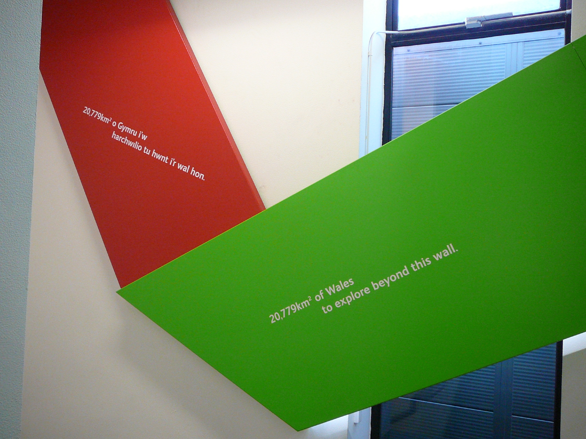 When you arrive in Cardiff airport, the walk from plane to passport control is a long one. We wanted to make that journey a bit more enjoyable. Greet people as soon as they get off the plane with that down to earth, witty tone of voice and brighten up those grey corridors with these red and green sculptural pieces.